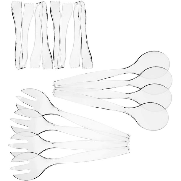 Set Of 12 Heavy Duty Disposable Plastic Serving Utensils Four 10 Spoons And Forks Four 6 1 2 Tongs Clear Walmart Com