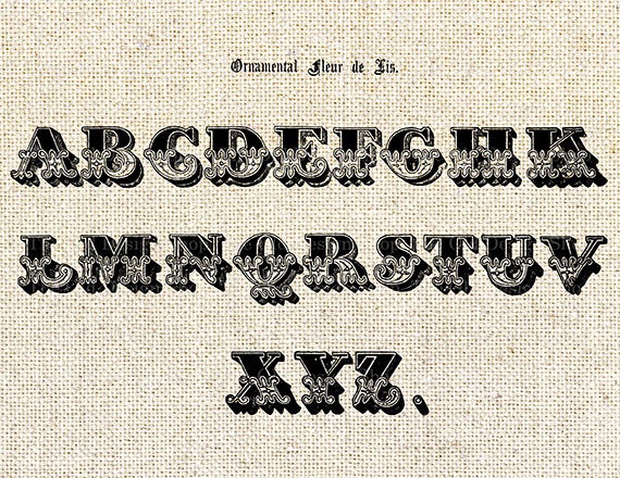 Alphabet Clip Art Fleur De Lis Antique 21 Letter Ornamental Etsy